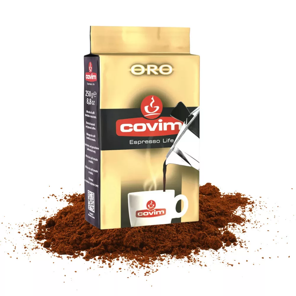 Covim Gold 250 g ground coffee – a balanced and refined Italian blend. Selected arabica and robusta beans create a smooth, aromatic, and flavorful cup. Ideal for moka pots, espresso machines, or daily coffee enjoyment.